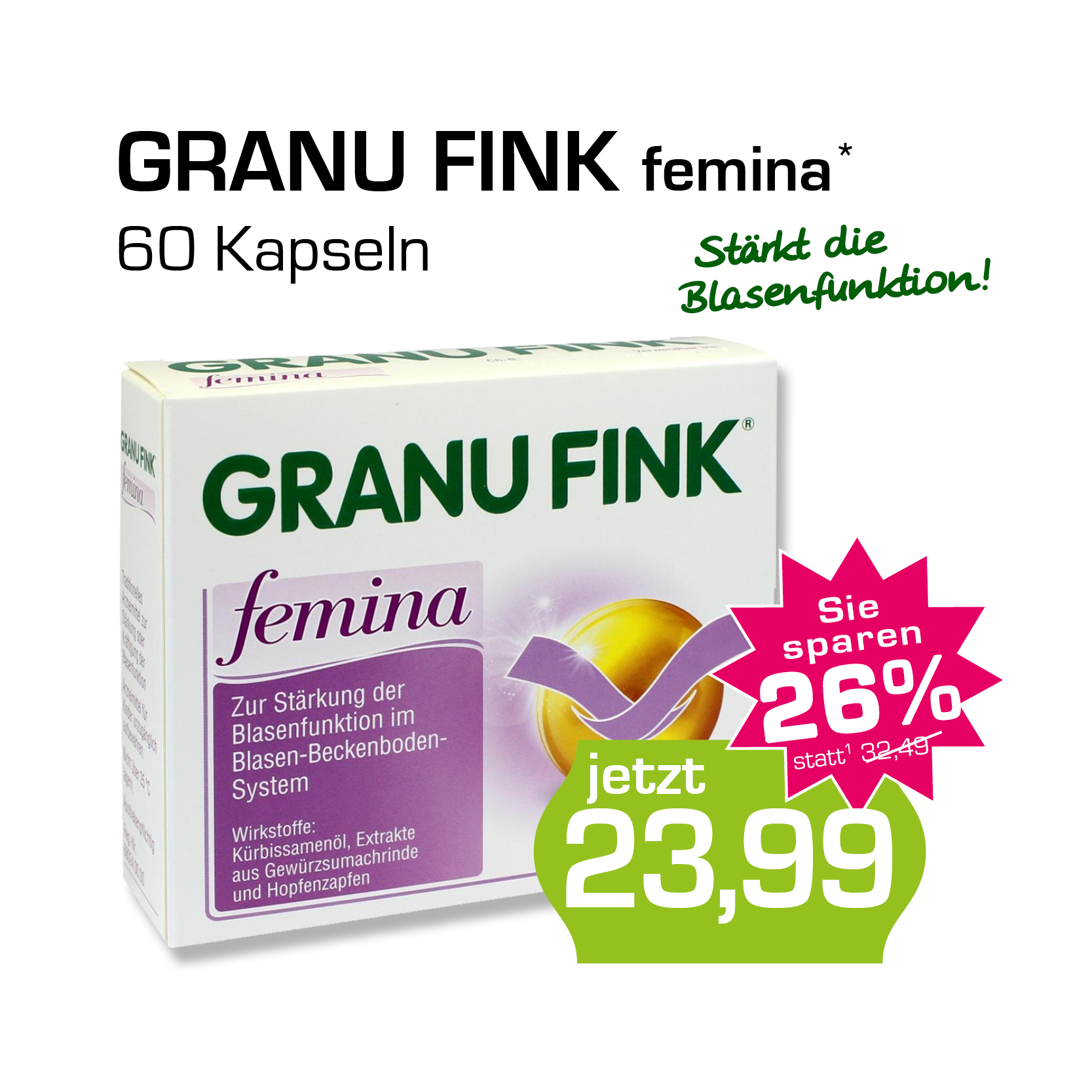 * Zu Risiken oder Nebenwirkungen lesen Sie die Packungsbeilage oder fragen Sie Ihren Arzt oder Apotheker. Abgabe in haushaltsüblichen Mengen. Solange der Vorrat reicht. Änderungen, Irrtümer und Druckfehler vorbehalten – Stand Druckschluss. Alle Preise in Euro inkl. MwSt. Rabatte nicht kombinierbar. Gültig vom 01. bis 31.03.2026. 1 In Apotheken bundesweit einheitlicher Verkaufspreis nach der Großen Deutschen Spezialitätentaxe (sog. Lauer-Taxe), der bei Abgabe zu Lasten der Gesetzlichen Krankenversicherung (GKV) berechnet wird. Es handelt sich nicht um die unverbindliche Preisempfehlung des Herstellers. 2 Unverbindliche Preisempfehlung des Herstellers.