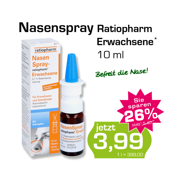 * Zu Risiken oder Nebenwirkungen lesen Sie die Packungsbeilage oder fragen Sie Ihren Arzt oder Apotheker. Abgabe in haushaltsüblichen Mengen. Solange der Vorrat reicht. Änderungen, Irrtümer und Druckfehler vorbehalten – Stand Druckschluss. Alle Preise in Euro inkl. MwSt. Rabatte nicht kombinierbar. Gültig vom 01. bis 31.10.2025. 1 In Apotheken bundesweit einheitlicher Verkaufspreis nach der Großen Deutschen Spezialitätentaxe (sog. Lauer-Taxe), der bei Abgabe zu Lasten der Gesetzlichen Krankenversicherung (GKV) berechnet wird. Es handelt sich nicht um die unverbindliche Preisempfehlung des Herstellers. 2 Unverbindliche Preisempfehlung des Herstellers.