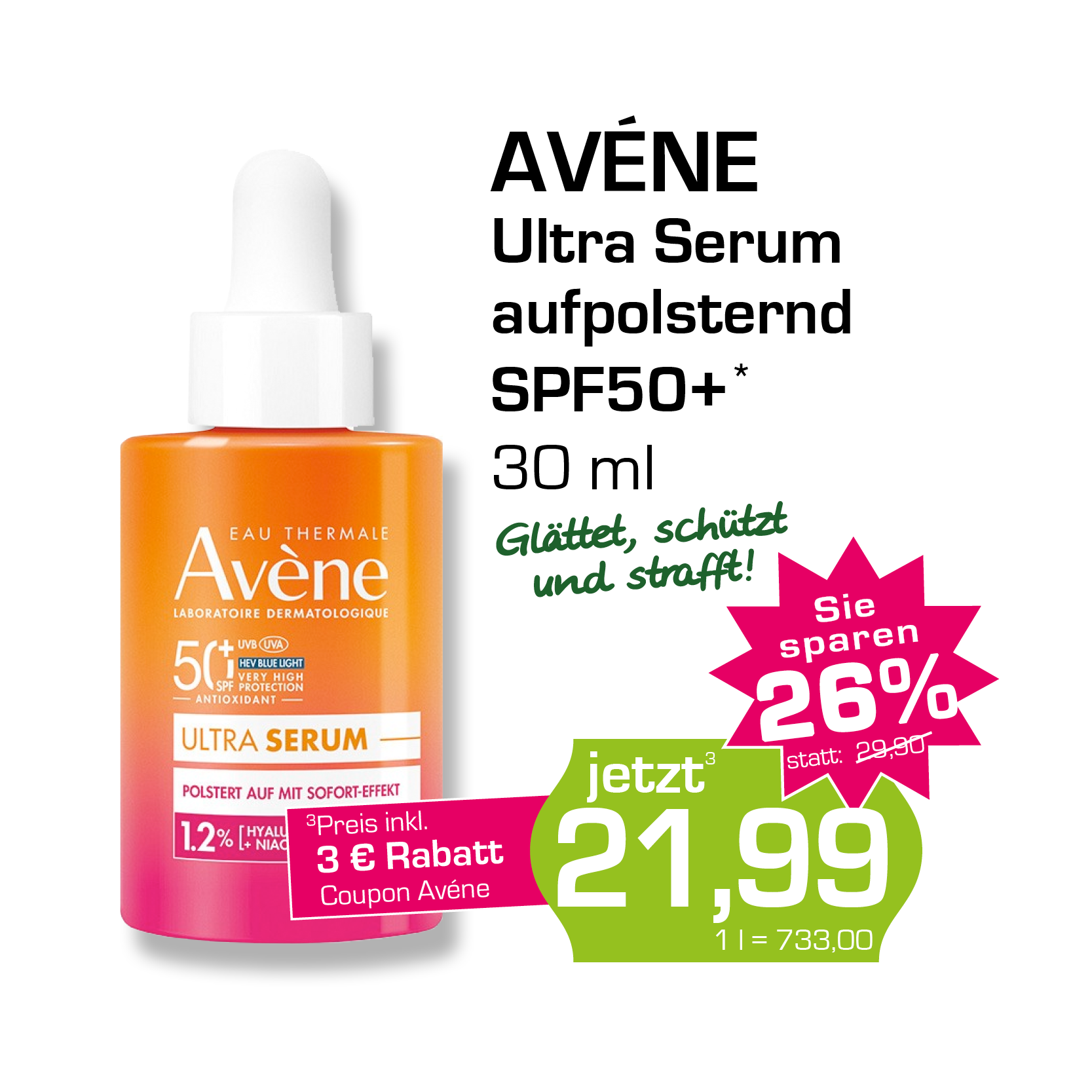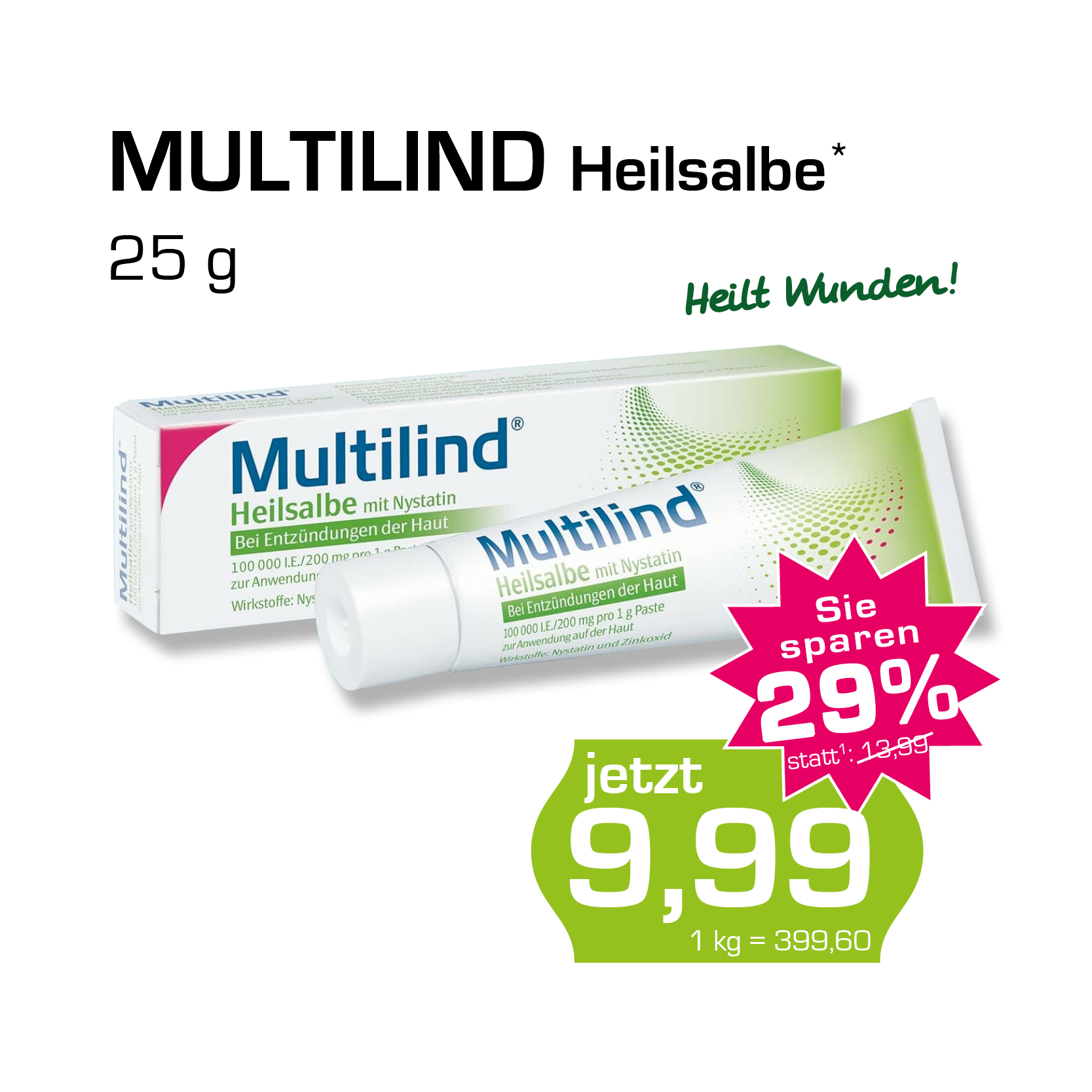 * Zu Risiken oder Nebenwirkungen lesen Sie die Packungsbeilage oder fragen Sie Ihren Arzt oder Apotheker. Abgabe in haushaltsüblichen Mengen. Solange der Vorrat reicht. Änderungen, Irrtümer und Druckfehler vorbehalten – Stand Druckschluss. Alle Preise in Euro inkl. MwSt. Rabatte nicht kombinierbar. Gültig vom 01. bis 30.04.2026. 1 In Apotheken bundesweit einheitlicher Verkaufspreis nach der Großen Deutschen Spezialitätentaxe (sog. Lauer-Taxe), der bei Abgabe zu Lasten der Gesetzlichen Krankenversicherung (GKV) berechnet wird. Es handelt sich nicht um die unverbindliche Preisempfehlung des Herstellers. 2 Unverbindliche Preisempfehlung des Herstellers.
