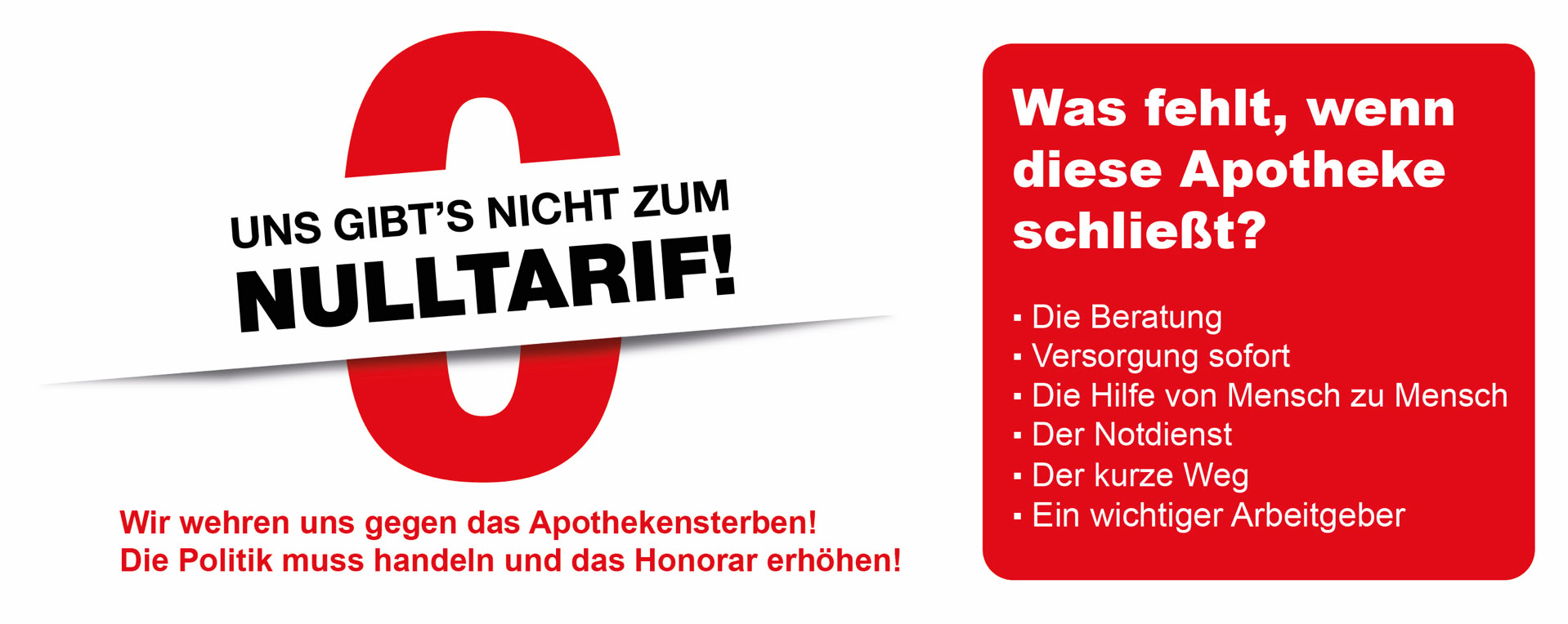 Wir wehren uns gegen das Apothekensterben! Die Politik muss handeln und das Honorar erhöhen! Ihre Apotheke muss überleben!